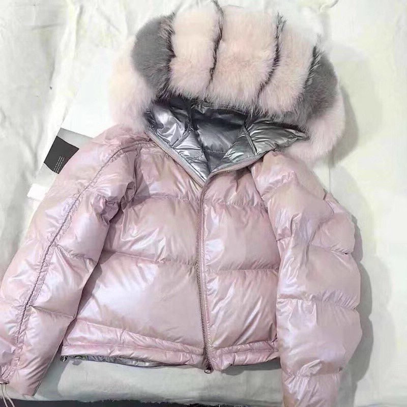 Real Fur Coat Natural Fox Fur Collar 2019 Winter Jacket Women Loose Short Down Coat White Duck Down Jacket Thick Warm Down Parka